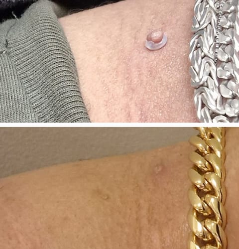 Die meisten Hautanhängsel fallen normalerweise innerhalb von 4 bis 12 Tagen nach der Anwendung von DermaClip ab. Das genaue Timing hängt von der Größe des Hautanhängsel ab, aber der Prozess ist schmerzlos und völlig natürlich.