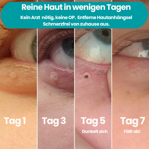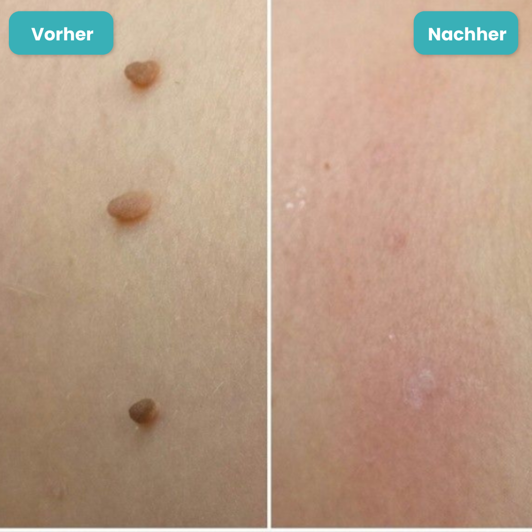 Aus Frust probiert man dann oft alles Mögliche aus, zum Beispiel Hausmittel wie: Apfelessig, Teebaumöl, irgendwelche Cremes oder Vereisungs-Kits. Aber Meistens bringt das kaum etwas – und im schlimmsten Fall gibt’s Reizungen, Verbrennungen, Infektionen oder Narben. Und wenn man dann doch zum Hautarzt geht, ist man schnell 100–200 € pro Sitzung los. Und selbst dann können neue Hautanhängsel später wieder auftauchen.